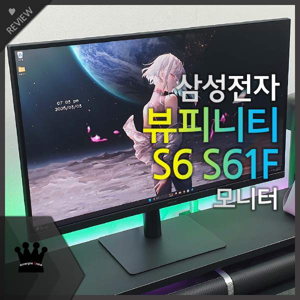 이렇게 해서, 가성비 좋은 27인치 업무용 모니터 삼성전자 뷰피니티 S6 S61F LS27F610 IPS 멀티스탠드를 살펴봤습니다. 고해상도 및 고주사율을 지원하는 뷰피니티 시리즈 중에서 합리적인 비용으로 만나볼 수 있는 제품으로, 그래픽 작업은 물론, 영화 감상이나 게임 플레이 시 생생한 화면을 느낄 수 있고, 이를 통해, 다양한 작업을 부담 없이 즐길 수 있었습니다. HDR과 가변주파수 기술 등은 빠졌고, C 타입 연결도 어려운 모델이지만, 컴퓨터 모니터로 사용 시 전반적인 기본기가 평균 이상이고, 멀티스탠드를 활용한 세로 모니터 및 듀얼 모니터 등의 환경 구축이 수월해, 영상 컨텐츠 감상과 사무 작업등에 활용할 가성비 모니터를 찾고 계시다면, 해당 제품을 추천드리고 싶네요.
